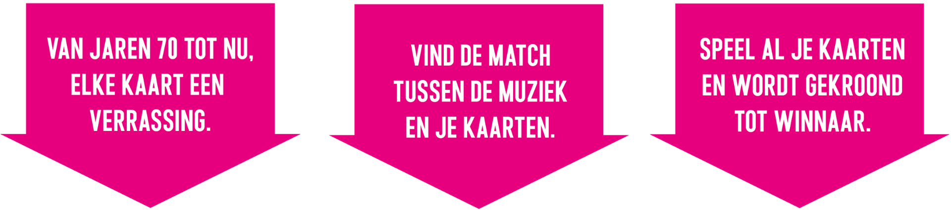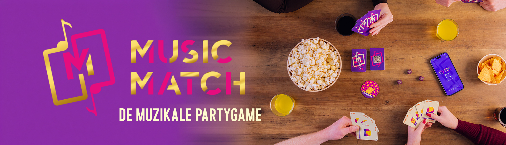 Music Match is een muzikaal kaartspel waarbij je als eerste al je kaarten probeert weg te spelen. Scan een QR-Kaart en match een kaart uit je hand met de muziek, bijvoorbeeld op artiest, genre of decennium. Draai de kaarten om en ontdek wie er goed zat!